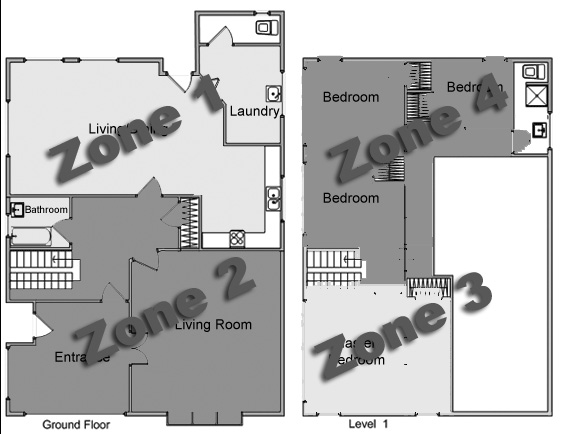 This two-story home has four zones. The easiest way to estimate zone weights is to divide the number of runs in each zone by the total number of runs in the system.